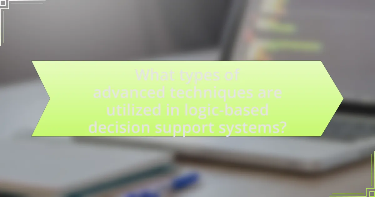 Advanced techniques for logic-based decision support systems include rule-based reasoning, fuzzy logic, and probabilistic reasoning. Rule-based reasoning utilizes a set of predefined rules to derive conclusions from given data, enabling systems to make decisions based on logical inference. Fuzzy logic extends traditional binary logic by allowing for degrees of truth, which is particularly useful in situations with uncertainty or imprecision, enhancing the system’s ability to handle real-world complexities. Probabilistic reasoning incorporates uncertainty into decision-making processes by using statistical methods to evaluate the likelihood of various outcomes, thereby improving the robustness of the decisions made. These techniques are validated by their application in various domains, such as healthcare for diagnostic support and finance for risk assessment, demonstrating their effectiveness in enhancing decision-making capabilities.